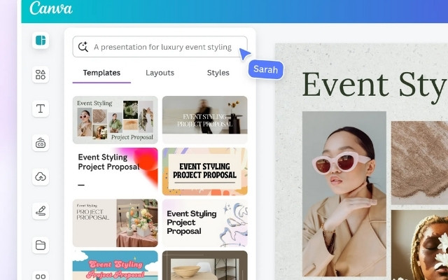 De kracht van Canva zit in de combinatie van gebruiksvriendelijke templates en slimme AI. Je kunt een simpele prompt invullen en Canva AI stelt direct een flyer-ontwerp voor.
